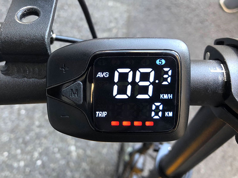 LED液晶ディスプレイはアシストモード選択・バッテリー残量・走行スピード・走行総距離の4機能を集約しています。明るいLEDスクリーンは昼間は明瞭に、夜間は優しい表示になります。