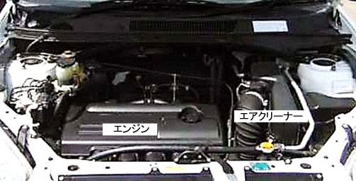 エンジンルーム内にエンジン、エアクリーナーなどの部品が確認できます。