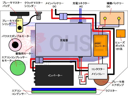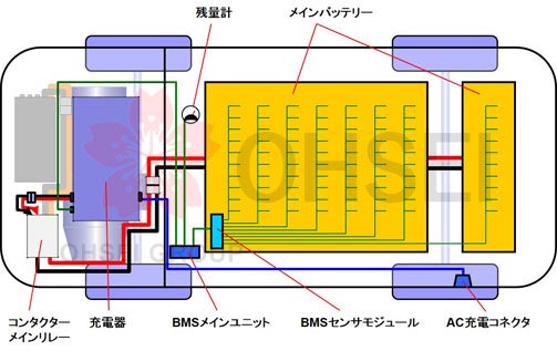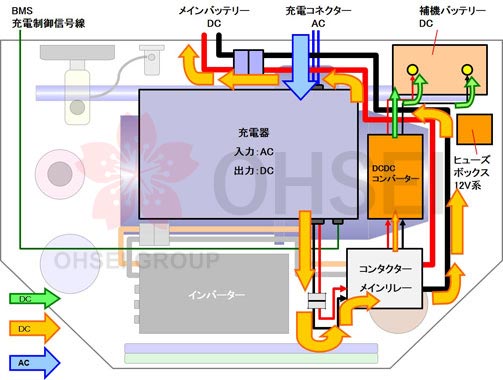 ●充電器からのDC出力はメインリレー部を通り、メイン