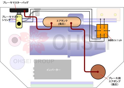 ●ブレーキ用エアポンプ(バキュームポンプ)で負圧を