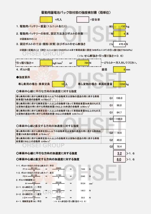 ●バッテリーを固定するボルトの強度等から計算し、取り付け部の強度を検討します。
