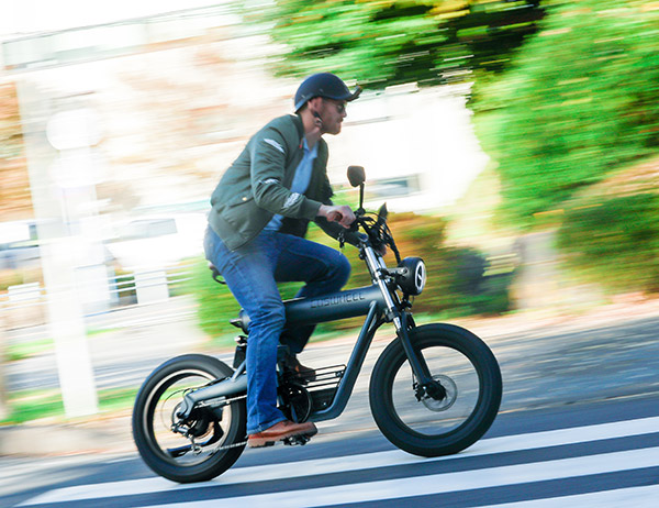 1回の充電で約45km走行可能。行きたいところまでいける本格バイク。スタート時の驚くほどスムーズな発進・動きはEVならでは。